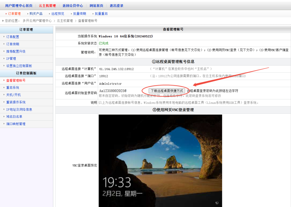2、点击【下载远程桌面快捷方式】进行下载,建议保存到桌面,或比较容易找得到的位置