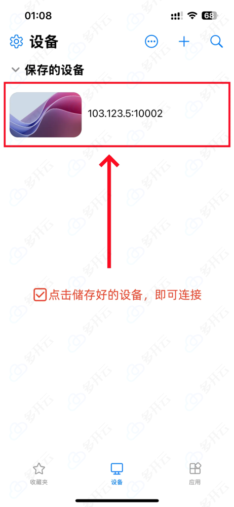 5、在添加的设备列表,点击刚刚填写的设备进行连接,如下图